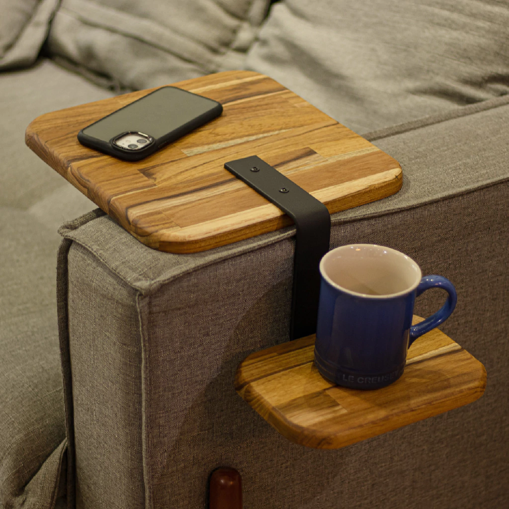Conheça nossa mesinha de apoio Float, a parceira perfeita para seus momentos de relaxamento! Feita com carinho em madeira maciça Teca e barra chata em aço carbono resistente, ela se encaixa no braço do seu sofá, proporcionando praticidade e um toque moderno à sua sala. Tenha tudo ao alcance das mãos enquanto desfruta do conforto do seu espaço. Afinal, estilo e funcionalidade andam juntos, não é mesmo?