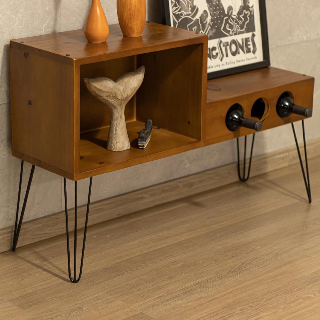 Produzido com materiais de alta qualidade, o Rack Daru oferece resistência e durabilidade, além de um visual que se destaca pela harmonia entre o calor da madeira e a elegância do metal. Ideal para acomodar seus eletrônicos, livros e objetos decorativos com estilo.